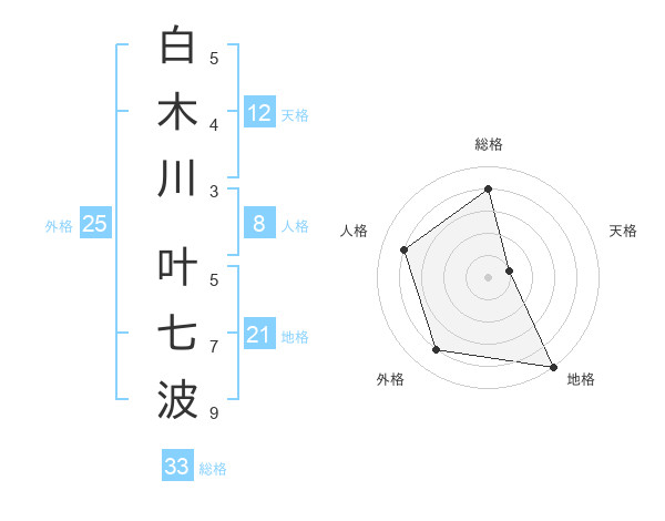 白木川 叶七波さんの総格は33画の4点!