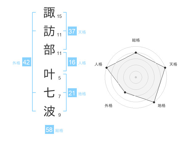 諏訪部 叶七波さんを姓名の画数から五運を鑑定
