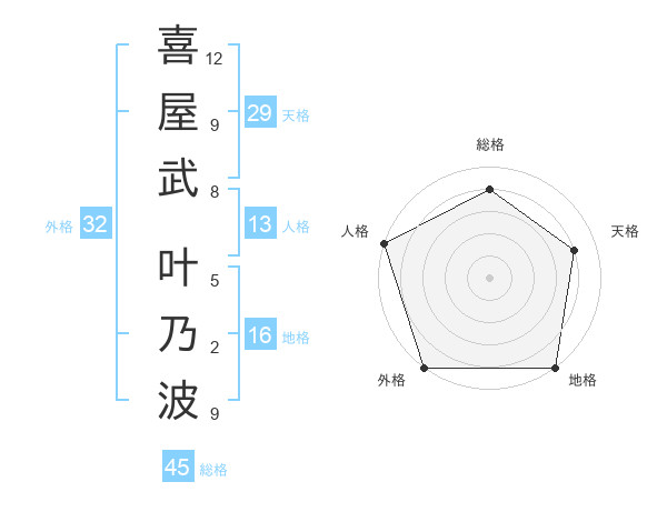 喜屋武 叶乃波さんの天格は29画の4点!