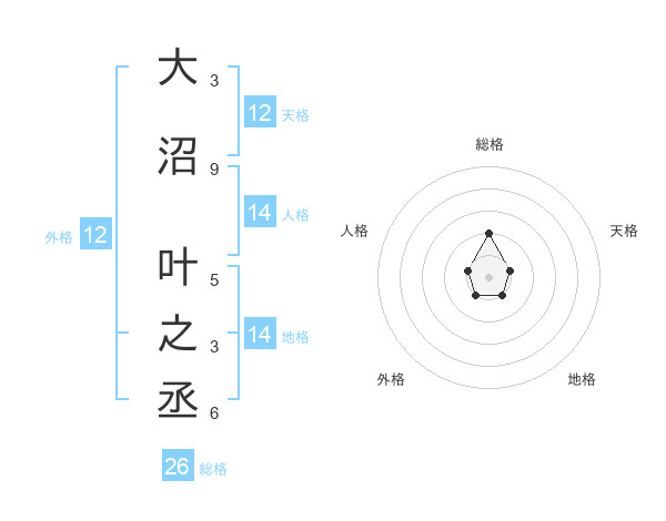 大沼 叶之丞さんを姓名の画数から五運を鑑定