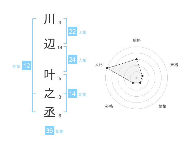 川辺 叶之丞さんの外格は12画の1点!