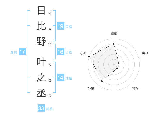 日比野 叶之丞さんの総格は33画の4点!
