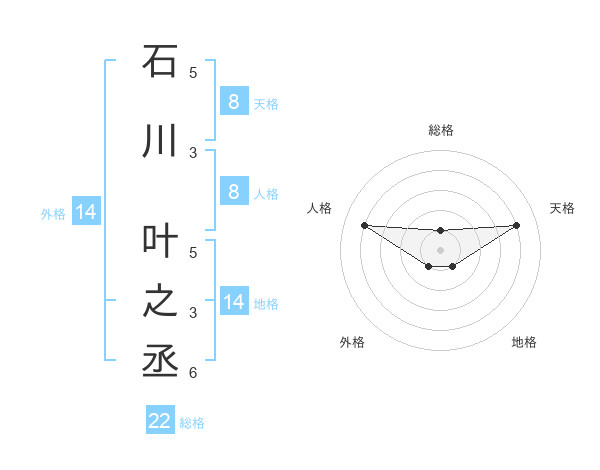 石川 叶之丞さんの総格は22画の1点