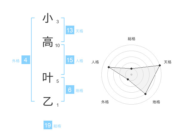 小高 叶乙さんを姓名の画数から五運を鑑定