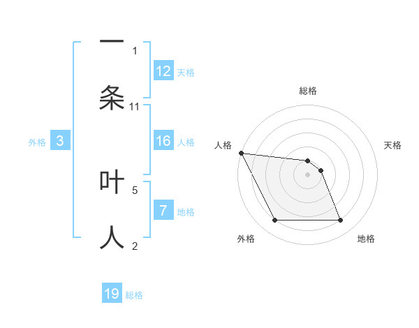 一条 叶人さんの天格は12画の1点!