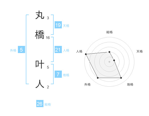 丸橋 叶人さんの総格は26画の2点!
