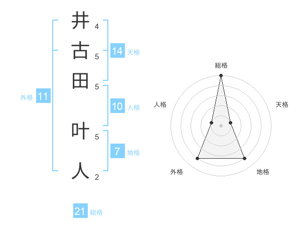 井古田 叶人さんの総格は21画の5点!