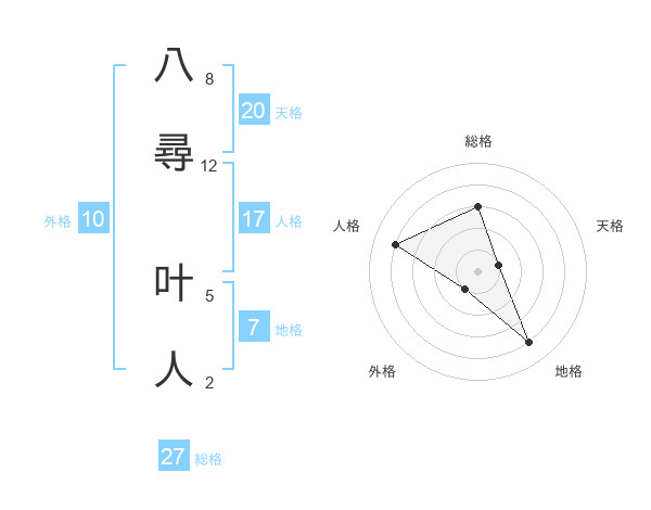 八尋 叶人さんを姓名の画数から五運を鑑定