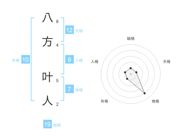 八方 叶人さんの総格は19画の1点!