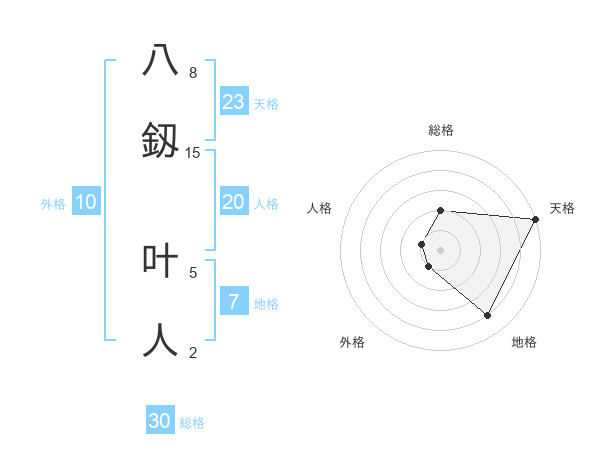 八釼 叶人さんの天格は23画の5点!