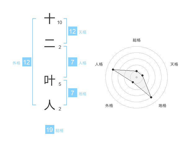十二 叶人さんの外格は12画の1点!
