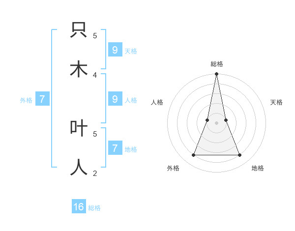 只木 叶人さんの総格は16画の5点!