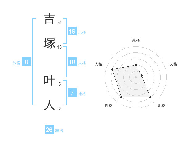 吉塚 叶人さんの総格は26画の2点!
