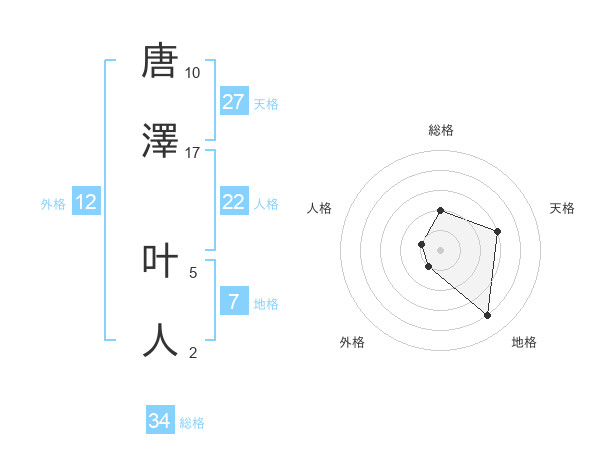 唐澤 叶人さんの総格は34画の2点!