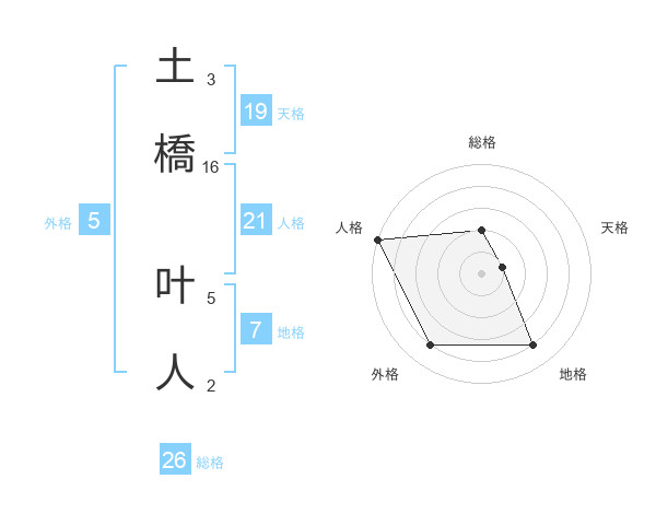 土橋 叶人さんを姓名の画数から五運を鑑定