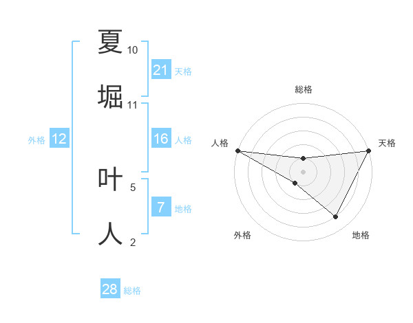 夏堀 叶人さんの天格は21画の5点!
