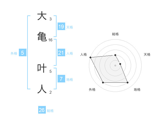 大亀 叶人さんの総格は26画の2点!