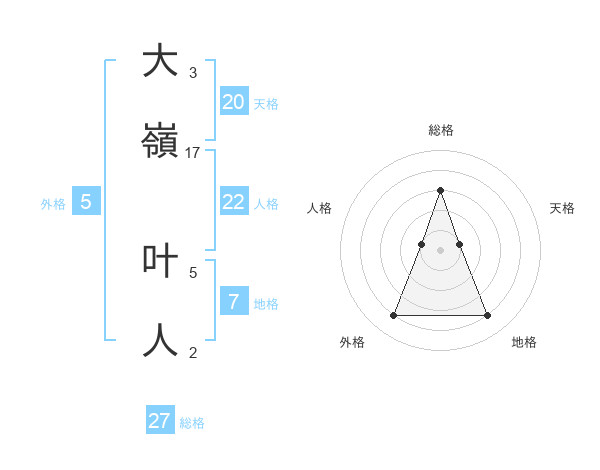 大嶺 叶人さんの総格は27画の3点!