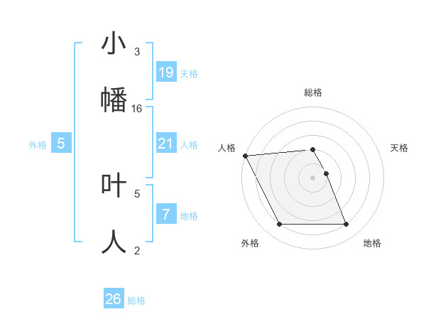 小幡 叶人さんの総格は26画の2点!