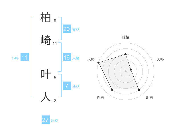 柏崎 叶人さんを姓名の画数から五運を鑑定