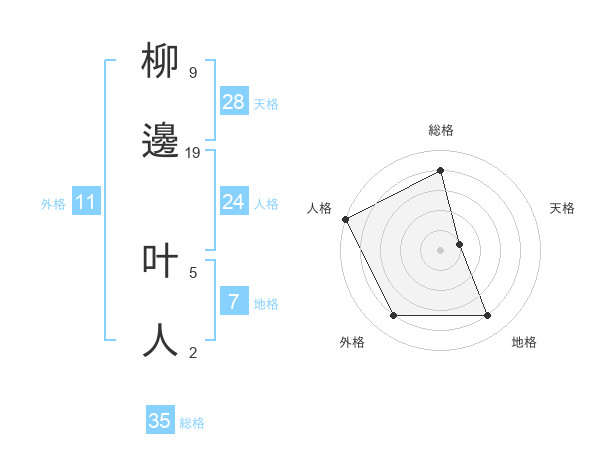 柳邊 叶人さんの総格は35画の4点!