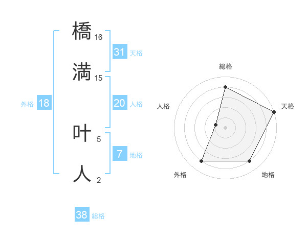 橋満 叶人さんの天格は31画の5点!