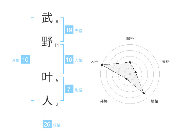 武野 叶人さんの人格は16画の5点!