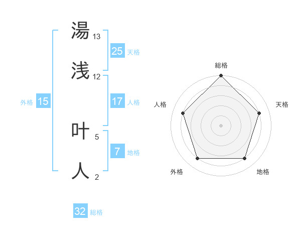 湯浅 叶人さんを姓名の画数から五運を鑑定