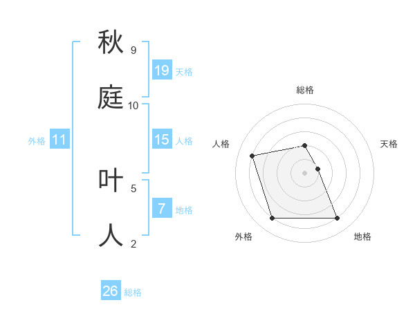 秋庭 叶人さんを姓名の画数から五運を鑑定
