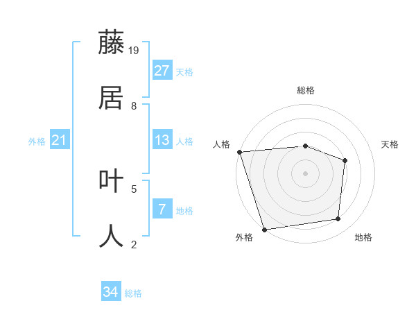 藤居 叶人さんを姓名の画数から五運を鑑定