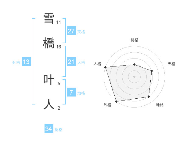 雪橋 叶人さんの外格は13画の5点!