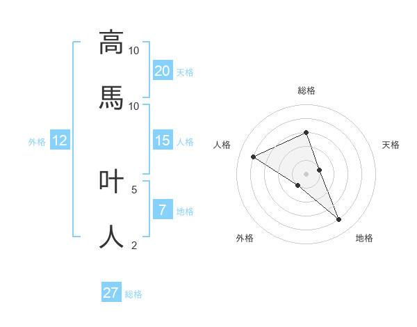 高馬 叶人さんの総格は27画の3点!
