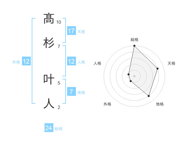 髙杉 叶人さんの総格は24画の5点!