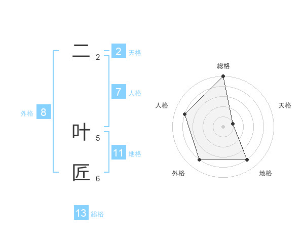 二 叶匠さんの総格は13画の5点!