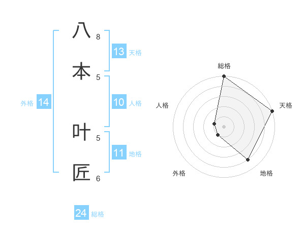 八本 叶匠さんの総格は24画の5点!
