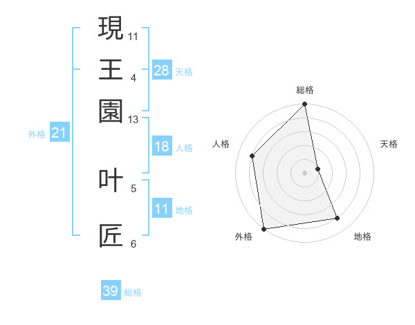 現王園 叶匠さんを姓名の画数から五運を鑑定