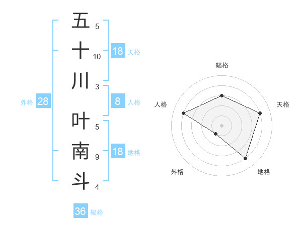 五十川 叶南斗さんを姓名の画数から五運を鑑定