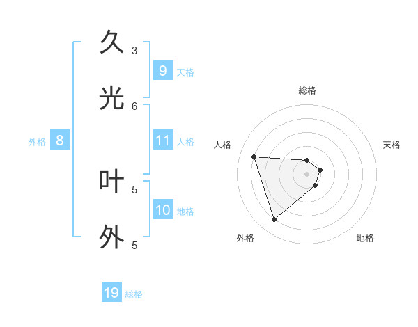 久光 叶外さんの総格は19画の1点!