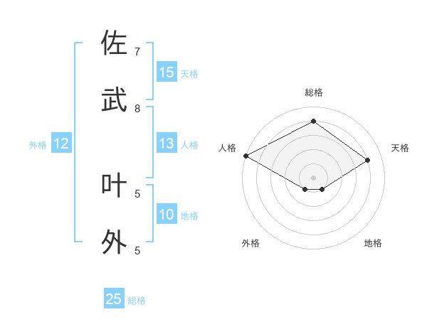 佐武 叶外さんを姓名の画数から五運を鑑定