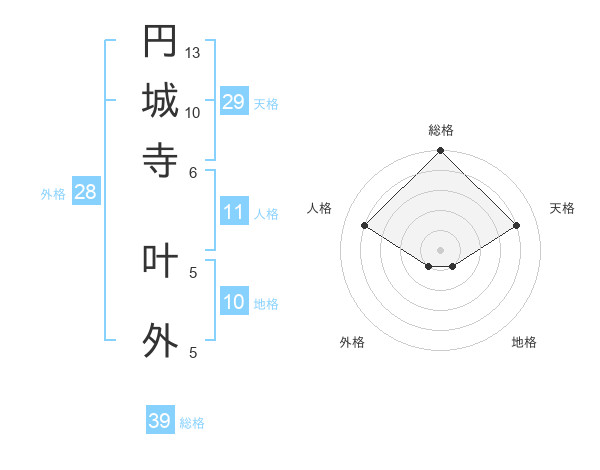 円城寺 叶外さんの総格は39画の5点!