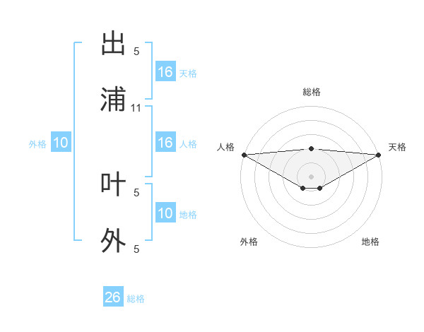 出浦 叶外さんの総格は26画の2点!