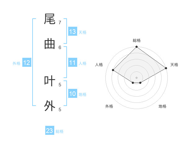 尾曲 叶外さんの天格は13画の5点!
