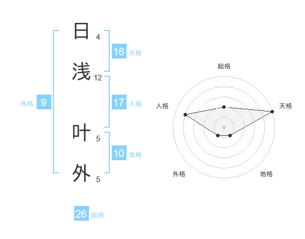 日浅 叶外さんの総格は26画の2点!