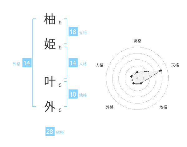 柚姫 叶外さんの天格は18画の4点!
