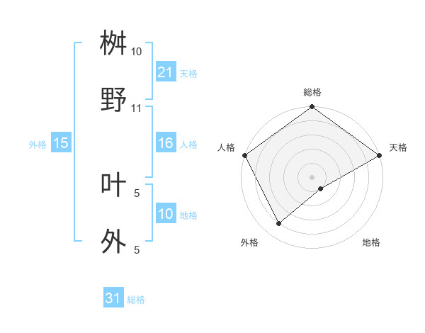 桝野 叶外さんの総格は31画の5点!