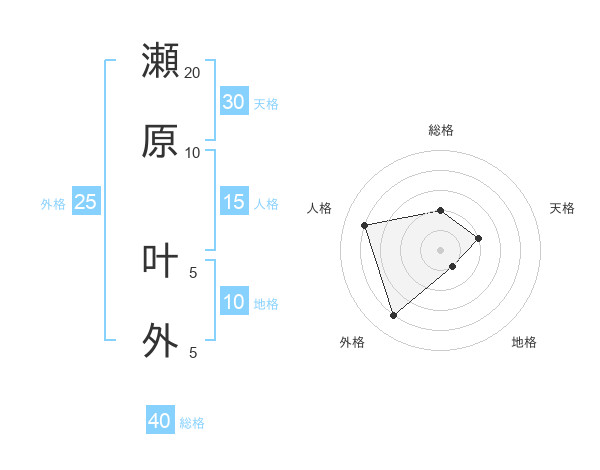 瀬原 叶外さんの総格は40画の2点!