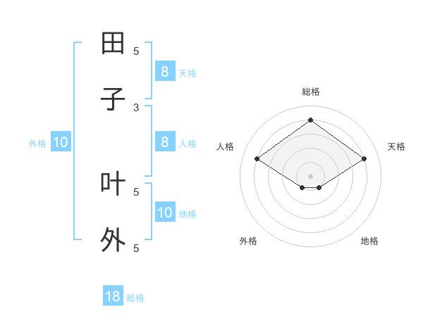 田子 叶外さんの総格は18画の4点!