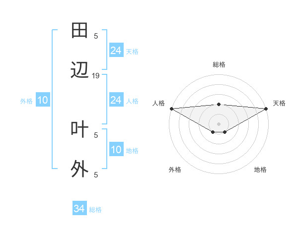 田辺 叶外さんの天格は24画の5点!