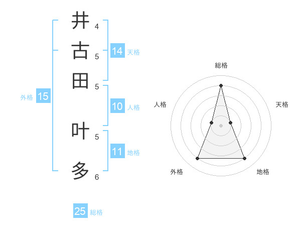 井古田 叶多さんの総格は25画の4点!