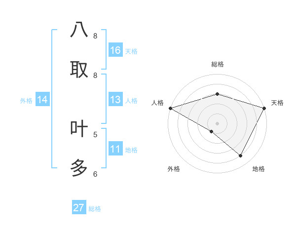 八取 叶多さんの天格は16画の5点!